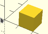 The default origin of both cubes is the intersection of the X, Y, and Z axis lines. To apply a set of variables to relocate the box parts requires the translate([x,y,z]) command. If you use translate([0,0,0]) it has the same effect as no translation at all, however, putting a value into any of the parameters will shift the resulting shape as shown in the next illustrations.