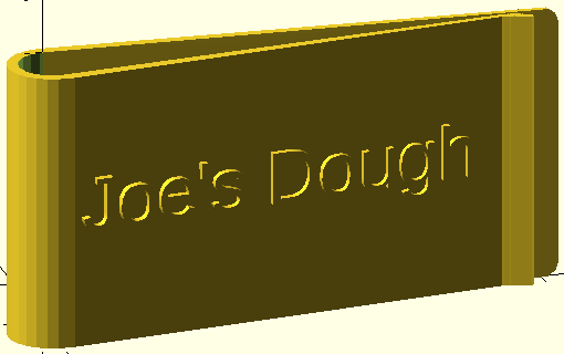 text(font="Liberation Sans", size=10, halign="center", valign="center", str("Joe's Dough"));