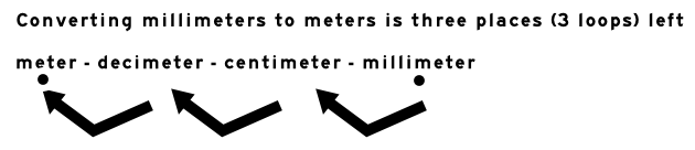Kilometer - Hectometer - Decameter - meter - centimeter - millimeter More loops are now possible, but the conversion is still as easy to do. Remember, you may need more placeholder zeros.