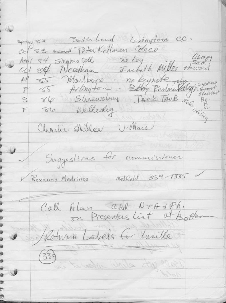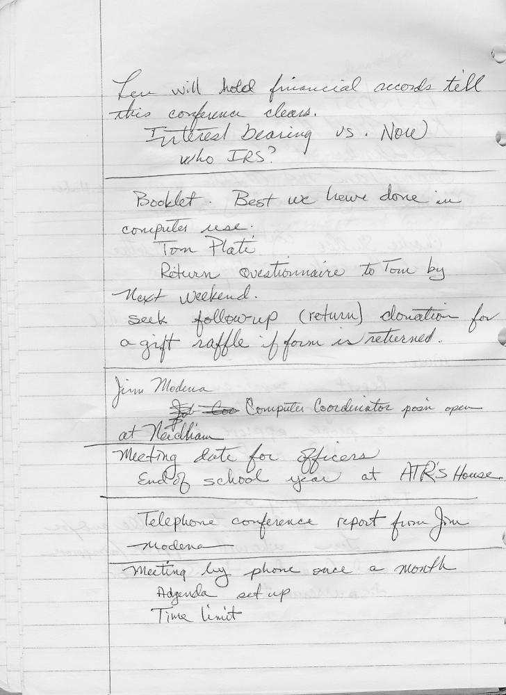 When Algot Runeman got involved in MassCUE, he didn't have any portable technology so the minutes he took were handwritten in a spiral-bound notebook. For the fun of it, here are scans of the pages from that early notebook.