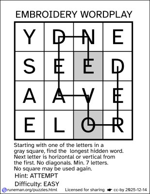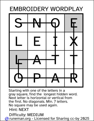 The puzzles are Creative Commons Attribution licensed which means you can use each of them as you wish, as long as you credit me as the author of the puzzle. Links back to the site are appreciated, but not needed. I would love to hear from you if you enjoy these puzzles. The easiest way is through my federated social media account at Mastodon.art.