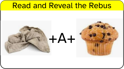 Solve a rebus by "speaking" the images (and any letter groups) from left to right to reveal a word or phrase.